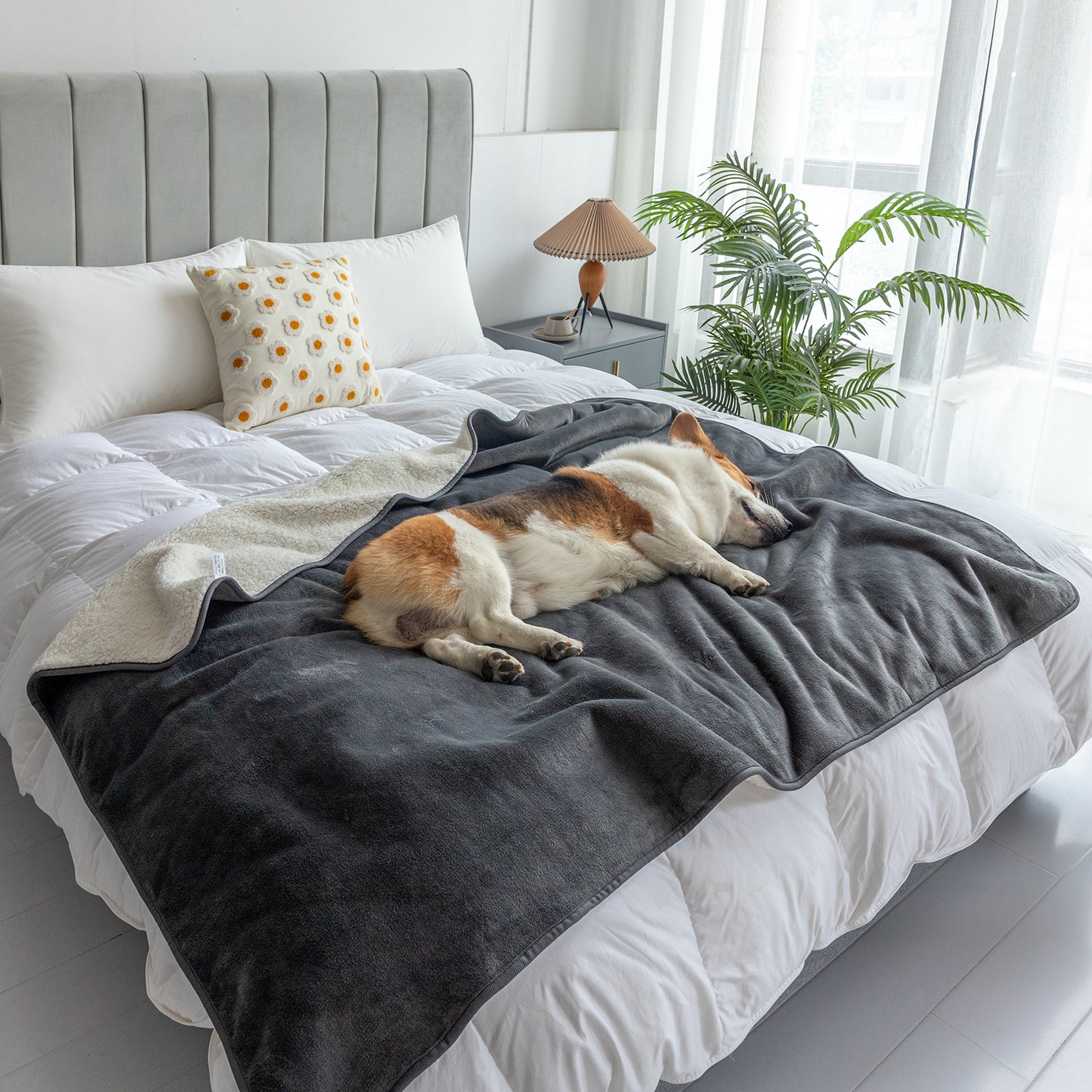 - WARMTH & COZINESS WITH REVERSIBLE DESIGN - Provide your furry friend with warmth and coziness using our reversible dog blanket. Lined with warm wool on one side and microfiber fleece on the other, it ensures comfort year-round. The waterproof inner lining prevents humidity and cold, while the reversible design with two different textures and colors adds an extra layer of protection for your couch and flooring.